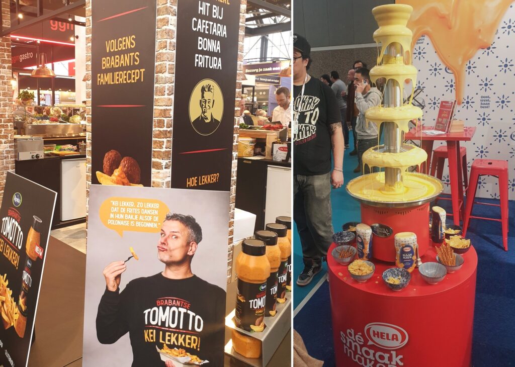 Net als bij snacks, is kaas een belangrijke smaakmaker voor sausmakers. Het meest zichtbaar is dit bij het Venlose bedrijf Hela Thissen, van oudsher bekend dankzij Hela’s curry-kruidenketchup. Met een grote sausfontein vestigt Hela de aandacht op zijn nieuwe kaassaus. Naam: Hela Goudse Kaassaus met een zeer romige smaak. Het is zowel warm als koud te verwerken.