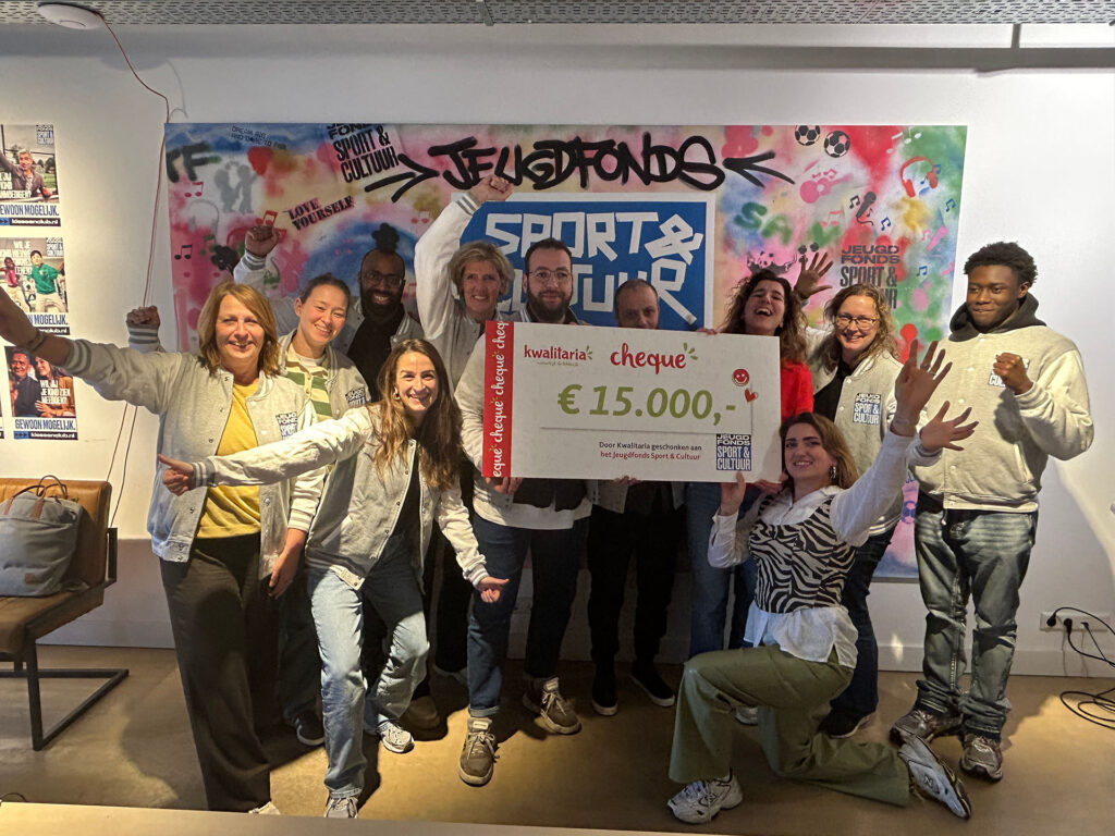 Het Jeugdfonds Sport & Cultuur is een van deze doelen. Onlangs mochten zij een cheque van 15.000 euro in ontvangst nemen, waarmee ruim 40 kinderen een jaar lang kunnen meedoen aan sport of cultuur. Naast deze financiële bijdrage zet Kwalitaria zich ook in om het Jeugdfonds bekender te maken bij gezinnen die ondersteuning goed kunnen gebruiken, maar niet altijd weten waar zij terechtkunnen, zo laten ze via een persbericht weten.