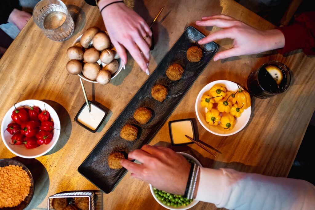 Denk aan gepaneerde snacks met brocolli, linzen en vijf kruiden, maar ook aan een kroket met champignons, erwten en massala.