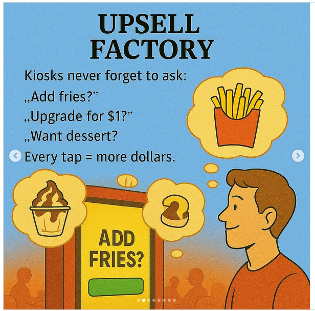 Deze restaurants gebruiken die orderkiosken niet alleen om het bestellen sneller te maken en de klant gemak te bieden. Ze hebben van te voren nagedacht over de klantenreis. Met andere woorden: waarvoor komt de klant naar je frituurzaak en hoe gaat deze zijn keuze maken? Probeer daarom eens in het hoofd van je klant te kruipen.