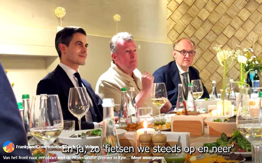 Franky van Hintum, die een frituurzaak in Eindhoven heeft, zat naast de premier. Hij vertelde hem waarom hij en collega Coen van Oosten al sinds het begin van de oorlog friet en snacks in Oekraïne uitdelen. Franky zegt: “De premier bleek opvallend goed op de hoogte van ons werk en volgt zelfs onze tv-serie Patatje Hoop.”