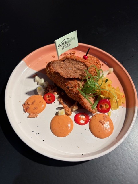 Elsa Hebels van Snackpoint het Stoepje uit Alteveer behaalde de derde prijs met haar Grykodel. “Een Nederlandse klassieker met crispy Griekse flair”, zo omschreef ze haar creatie. Als basis hiervoor gebruikt ze de huisfrikandel van de cafetariaformule Snackpoint. Deze werd gepaneerd met allerlei (Griekse) kruiden. De topping bestond uit tzatziki, rode saus en lente-uitjes.